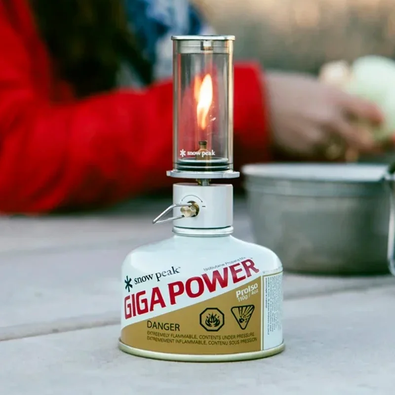 | GigaPower Lantern Auto | Bright site light (outdoors) | Isobutane canister | Hang from Pile Driver or hook | Compact mantle lantern; auto-ignition. |