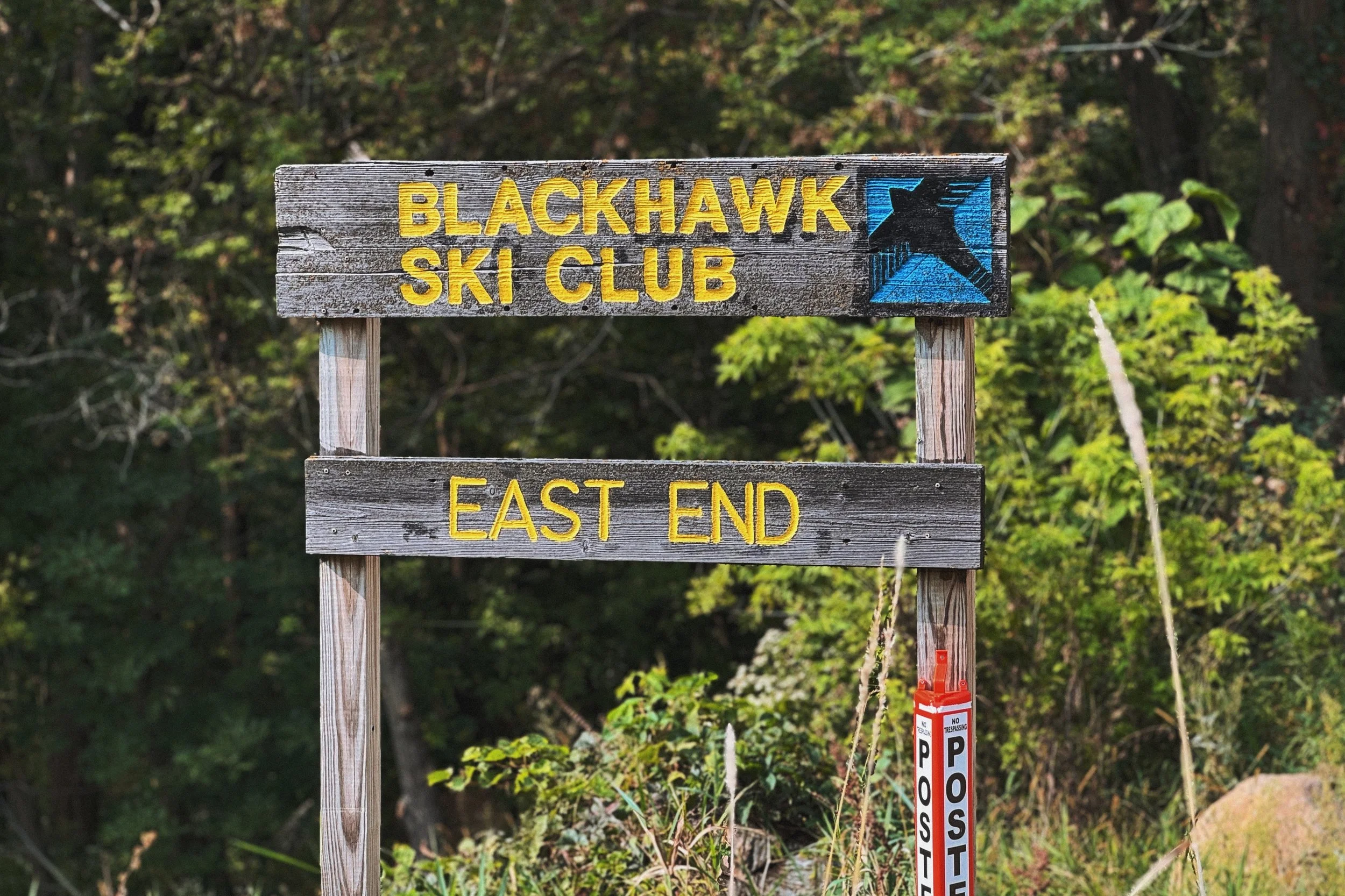 Sign at the entrance to East End at Blackhawk Ski Club, marking the location of the skills area.