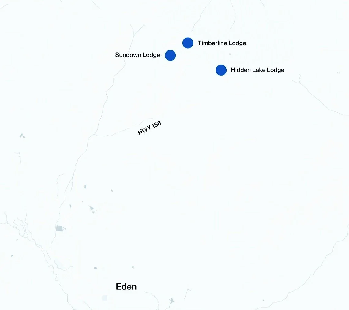 Powder Country & Woody’s World Shuttles: Access 1,200 acres of off-piste powder through Sundown, Timberline, and Hidden Lake lifts. Shuttle rides from HWY 158 to these locations are included with your lift pass, offering a seamless connection to vast skiing areas. Check for lift and terrain status updates to ensure availability.