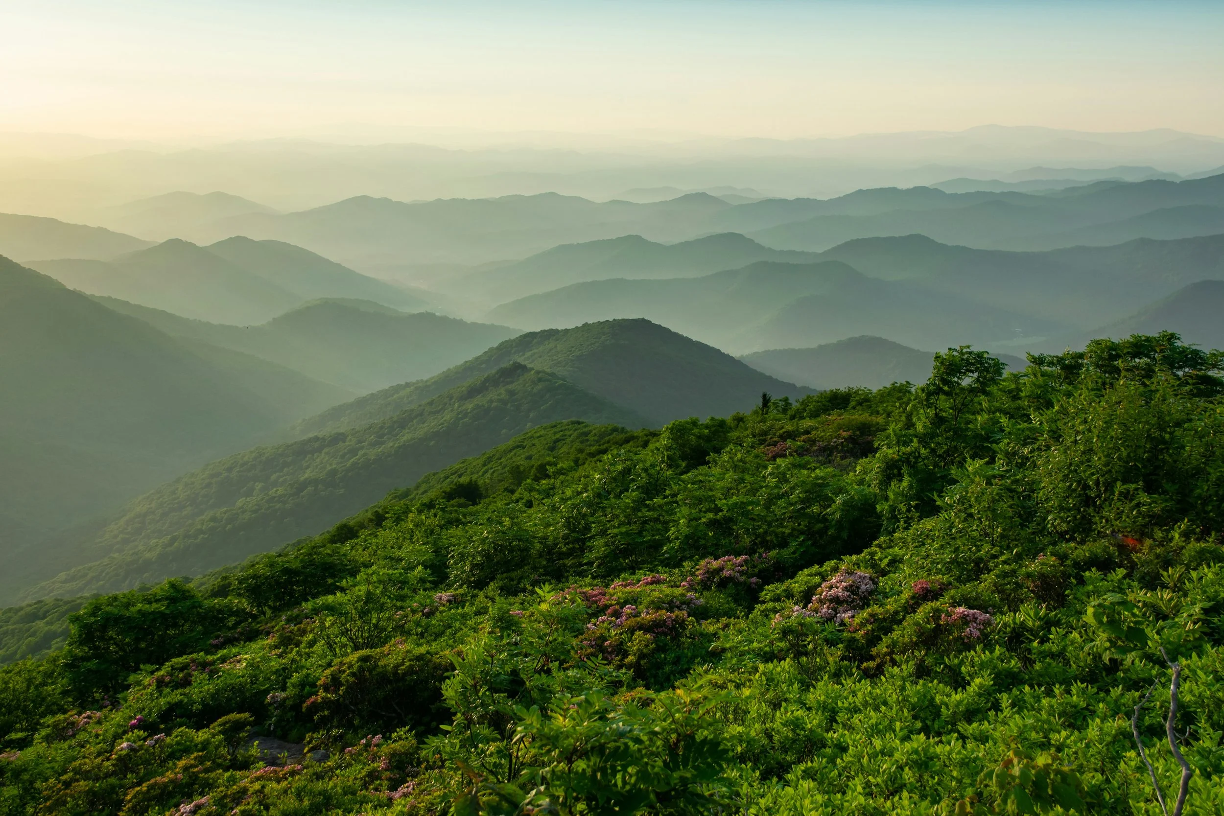 Rolling ridgelines in the southern Appalachians—rounded, forested mountains that set the stage for the Appalachian Trail. Photo: Clark Wilson via Unsplash.